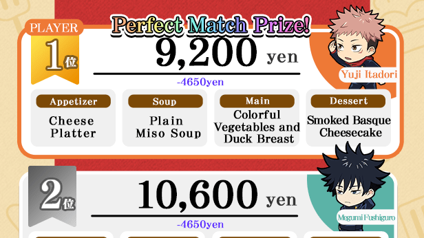 Itadori, Fushiguro, and Kugisaki came to a family restaurant and start a “Family Race,” aiming to match the exact target amount by ordering dishes.